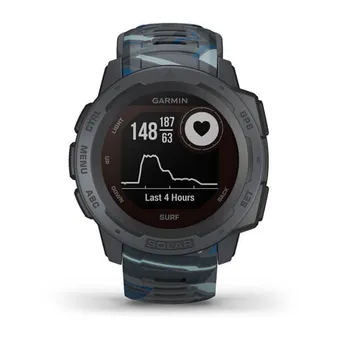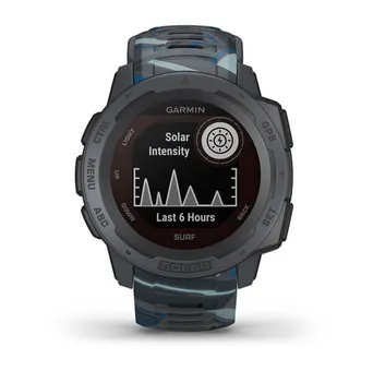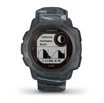 Med träningsklocka Garmin Instinct Solar Surf kör du tills tidvattnet vänder med dedikerade surffunktioner, fantastisk batteritid och solenergiladdning. Modellen är vattentålig upp till 100 meter och har en fiberförstärkt polymerboett, reptåligt Corning® Gorilla®-glas samt ett batteri som laddas av solen får du en enhet som är byggd för att vara länge. Dess starka färg, skärmar med hög kontrast och ändamålsenliga design väcker liv i en otraditionell smartwatch vilket utan tvekan får folk att vända på huvudet.