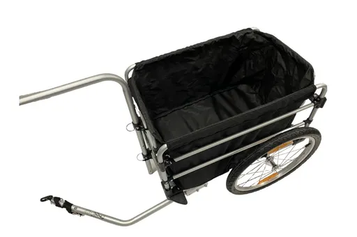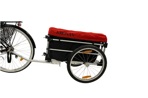 Den har ett praktiskt fäste som du monterar på den bakre hjulaxeln som är robust men samtidigt lätthanterligt och som ser till att du snabbt och enkelt kan fästa samt ta bort vagnen från din cykel. Vagnen har även ett praktiskt stöd som ser till att den kan kan stå upp utan att vara fäst på din cykel och självklart har den även reflexdetaljer och en vimpel som tar hand om synligheten, vilket är helt perfekt för våra nordiska förhållanden.