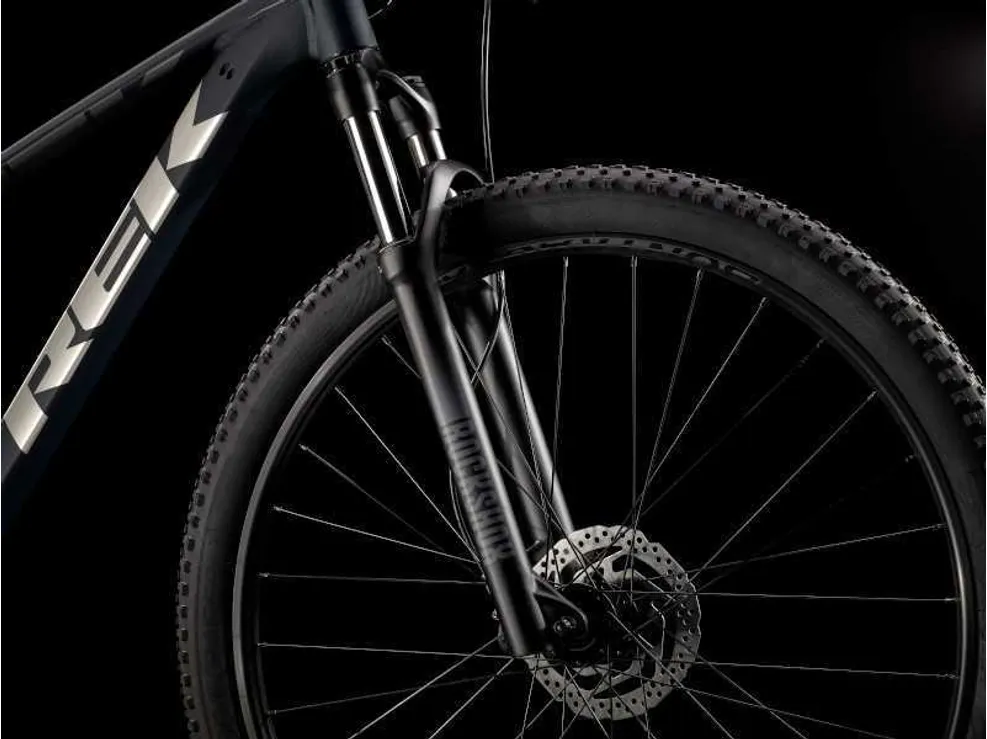 Framtill sitter en dämpad gaffel från RockShox med ställbar spiralfjädring och 100 mm slaglängd som dessutom är utrustad med Lockout. Det innebär att du kan spärra gaffeln och därmed åstadkomma högre pedaleffektivitet, vilket är perfekt på släta avsnitt där effektiviteten kanske är viktigare än stötdämpningen.