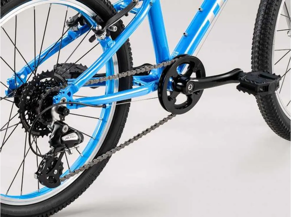 Den här cykelns har uteslutande kvalitativa komponenter vilket i praktiken innebär att barnen utan problem kan ge sig ut i småstökig terräng, så det inga som helst problem att hänga med föräldrarna till vardags och på tävling. Stommen består av en förstklassig lättviktsram i Alpha Aluminum som både är hållbar och är enkel för barnen att hantera. Den 1x8-växlade drivlinan kommer från kvalitetssäkra Shimano (Altus) och är det bästa sättet att lära ditt barn att cykla på en riktig MTB. Växlingen är smidig och reglagen intuitiva, så att barnet kan fokusera på det viktigaste, att ha maximalt med skoj!