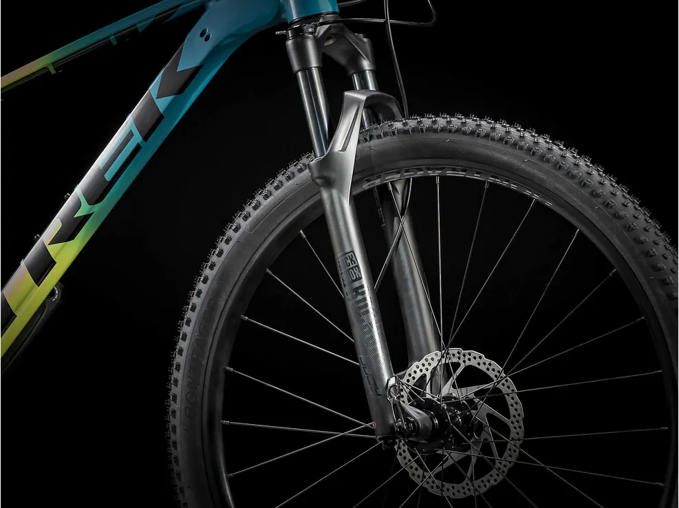 Hjulstorlek är anpassad efter ramens storlek (29"-hjul på större ramar och 27,5"-hjul på mindre) vilket ger dig den perfekta kombinationen av hög hastighet, kvick manöverförmåga och maximal kontroll. Det slitstarka hjulsetet från Bontrager består av lätta aluminiumfälgar (som är redo för att köras slanglöst) och mångsidiga kvalitetsgummin som briljerar på allt från hårdpackad singletrack till lös lervälling.
