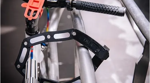 Vikbara Uläc Monoblade Type-AX är det första monobladelåset på marknaden med härdad aluminiumteknologi från ULAC Allux technology. Ett imponerande lätt lås som inte väger mer än 435 gram. Typ AX har en patenterad automatisk push-to-lock-cylinder och en mångsidig monteringsbygel för antingen ramen, sadelstolpe eller vid flaskhållaren.