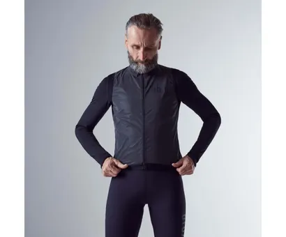 - Väl synlig men gör jobbet som en vanlig vindväst; d.v.s. vindtät front och ventilerande mesh i ryggen