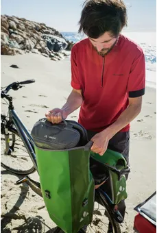 De flerfaldigt prisbelönta cykelväskorna Vaude Aqua Back är tillverkade i ett imponerande slitstarkt material som både är helt vattentätt och dessutom PVC-fritt. Väskor för kvalitet- och miljö-medvetna cyklister som riskfritt vill kunna transportera sina tillhörigheter i alla typer av klimat och väderförhållanden, oavsett om det gäller daglig pendling till jobbet eller det stora semesteräventyret över okända kontinenter.