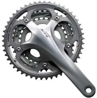 Ställ en fråga om Vevparti Shimano 105 FC-5703 3 x 10 växlar 50/39/30T 172.5 mm silverShimano 105 FC-5703 är en pålitlig trotjänare som använder Shimano´s beprövad 5-armade design med hög styvhet och låg vikt. Vevparti som ger dig en prisvärd kombination av precision, styrka, styvhet och som alltid levererar konsekventa växlingar samt ger dig en kedjehantering med smidig gång.