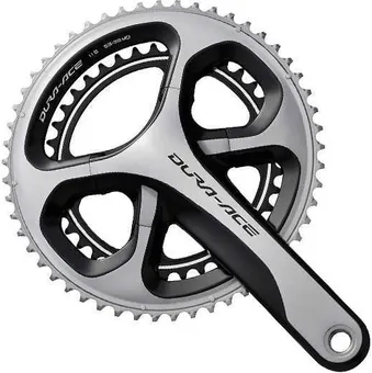 Ställ en fråga om Vevparti Shimano Dura-Ace FC-9000 2 x 11 växlar 52/38T 172.5 mmVevpartiet Shimano Dura-Ace FC-9000 är nu lättare, men har samma effektiva kraftöverföring och har fått en nykonstruerad kedjeledare, vilket drastiskt minskas risken för att kedjan skall hoppa av.