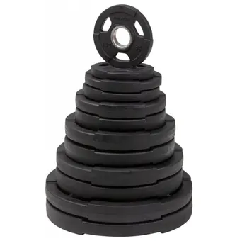 Gummiklädda gjutjärnsskivor med greppvänliga handtag. För 50 mm skivstänger.